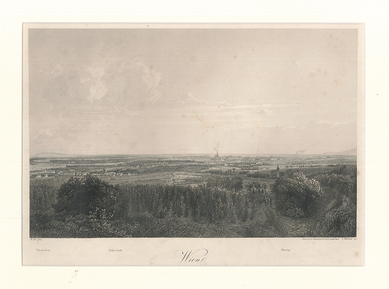 Wien, Taborbrücken - Heiligenstadt - Grinzing. Stahlstich v. Rudolf v. Alt. fec. J. Richter sc. Triest, Literarisch-artistische Abtheilung des Oesterr. Lloyd 1854. 19, 6 x 27 cm. (Bildgr.). Unter Passepartout.