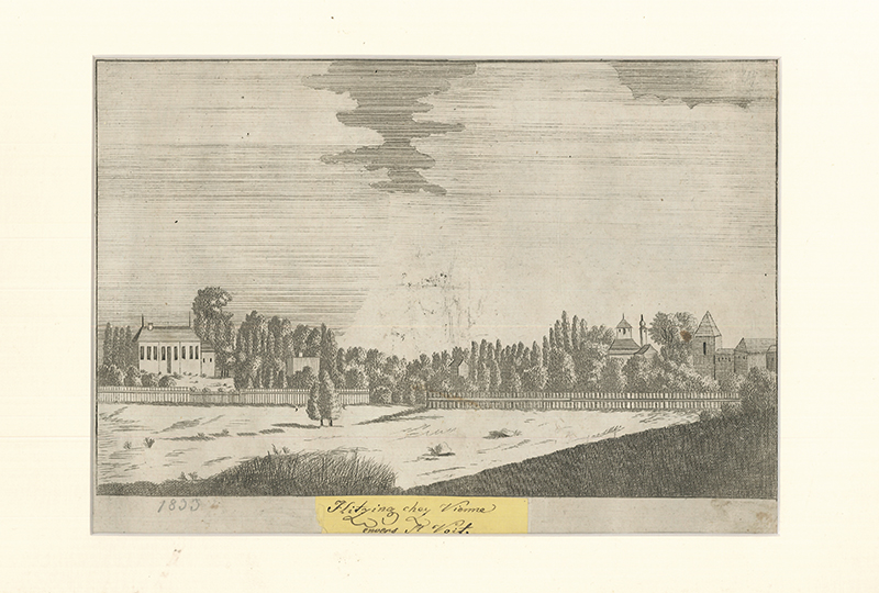 0008-26Hietzing - Hitzing chez Vienne - envers St. Veit.Kupferstich 1833 (handschriftlich). 18 x 25 cm. (Bildgr.). Unter Passepartout.