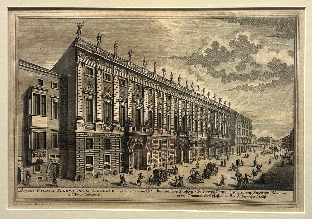 0023-26 KLEINER, Sal[omon] - CORVINIUS, J[ohann] A[ugust] Prospectus Palatii Eugenii Ducis Sabaudiae [...]/Prospect Ihro Hoch Fürstle. Durchl. Printz Eugenii von Savojen Palatium [...]. Nebehay-W. 306, II, 17 - Ansicht des Winterpalais des Prinzen Eugen im 1. Wiener Gemeindebezirk. Aus: Salomon Kleiner, Wahrhafte und genaue Abbildung aller Kirchen, Klöster [...]. | ||