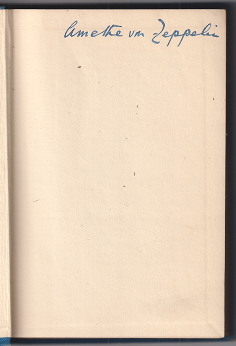 0039-26 DUNNE, J. W. An Experiment with Time. Auf dem fliegenden Vorsatz findet sich handschriftlich der Name Amethé von Zeppelin. Geboren wurde sie als Amethé Smeaton in Rangoon, Burma am 13 Jänner 1896. Im Sommer 1929 heiratete sie Graf Leo Parcus von Zeppelin. Er war der Adoptivsohn des Grafen Eberhard Zeppelin. Es wird angenommen, daß sie Philosophie studiert hat. Diese Annahme beruht auf ihrer Korrespondenz mit Bertrand Russel und ihrer späteren Übersetzertätigkeit - vor allem philosophischer Texte wie z. B. Rudolf Carnap's, The Logical Syntax of Language (1937). Nach dem 2. Weltkrieg übersetzte sie eine Reihe philosophischer Arbeiten und Heisenbergs Nuclear Physics. Amethé von Zepelin starb am 2. September 1969 in Wien. | ||||