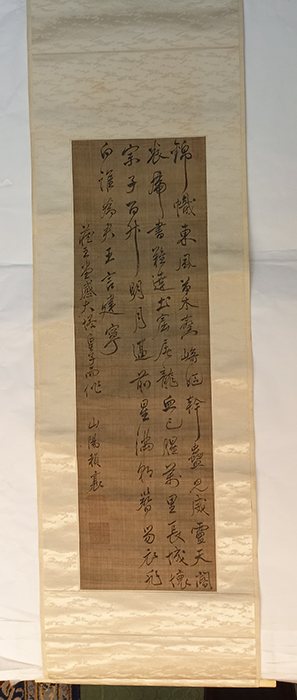 Japanese Calligraphy on silk scroll. Text by the Japanese philosopher and historiographer Rai San'yo (1780-1832), who is famous for his "History of Japan" (Nihon Gaishi).
