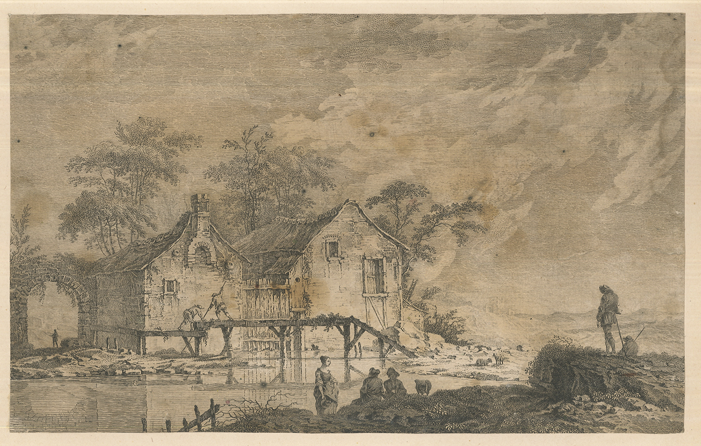 0219-25 [LANDERER, Ferdinand] - [PILLEMENT, Jean-Baptiste] (nach). Landschaft mit Fluss und Staffage. Landschaft aus der Serie "Collection des paysages", die in Ausgsburg erschienen ist und Radierungen von Ferdinand Landerer (1730-1795) nach Jean-Baptiste Pillement (1728-1808) enthält. | ||