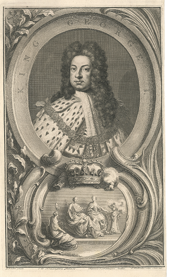 0335-25 GEORGE I - HOUBRACKEN, J[acobus] - KNELLER, G[odfrey] (nach). King George I. Portrait des britischen Königs George I. (1660-1727) von Jacobus Houbraken (1698-1780) nach einem Gemälde von Godfrey Kneller (1646-1723). George war von 1714 bis zu seinem Tod britischer König. | ||