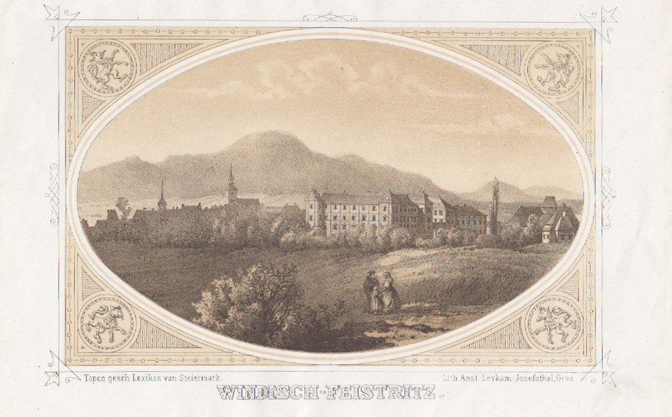 Windisch-Feistritz.Orig.-Tonlithographie. Graz, Leykam um 1878. Bildausschn. 12, 5 x 18, 5 cm. Blattgr. 16 x 23, 5 cm.