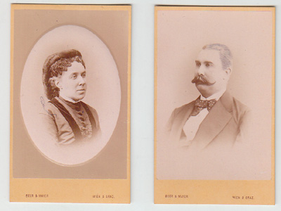 0682-11BEER & MAYER - [2 Portraits].2 Orig.-Photographien (dav. 1 "Camée-Bild") auf Karton. Wien/Graz, Beer u. Mayer [1872]. Carte-de-visite-Format (10,5 x 6,5 cm.). Das Atelier von Alois Beer und Ferdinand Mayer wurde 1871 in Graz gegründet. (vgl. Starl, Lex. zur Fotografie 38).