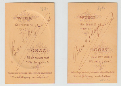 Das Atelier von Alois Beer und Ferdinand Mayer wurde 1871 in Graz gegründet. (vgl. Starl, Lex. zur Fotografie 38).