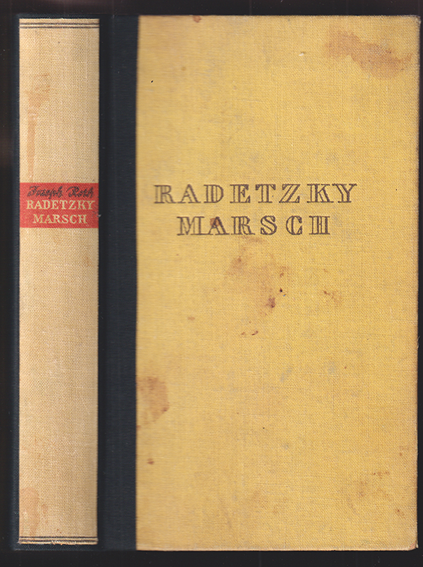 1057-25ROTH, Joseph. Radetzkymarsch. Roman. 31.-35. Tsd. Berlin, Kiepenheuer 1933. kl.-8°. 2 Bll., 582 S., 1 Bl. OLn.-Bd. mit Deckel- u. Rückentitel. Einband fleckig. Leinen an den Gelenken schwarz restaur. Innen gebräunt. 5. Auflage des erstmals 1932 erschienenen Romans von Joseph Roth (1894-1939). Die Einbandgestaltung stammt von Georg Salter. | |