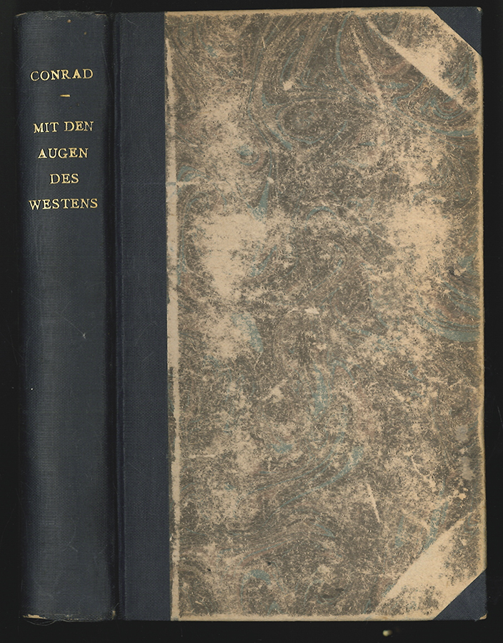 1071-25CONRAD, Joseph. Mit den Augen des Westens. Erste bis fünfte Auflage. Berlin, S. Fischer 1933. 8°. 3 Bll., 426 S. HLn.-Bd. mit Marmorpapierbezug. Mit goldgeprägtem Rückentitel. Kanten berieben, Ecken bestoßen. Innen minmal gebräunt. Die Übersetzung stammt von Ernst W. Freißler. | |