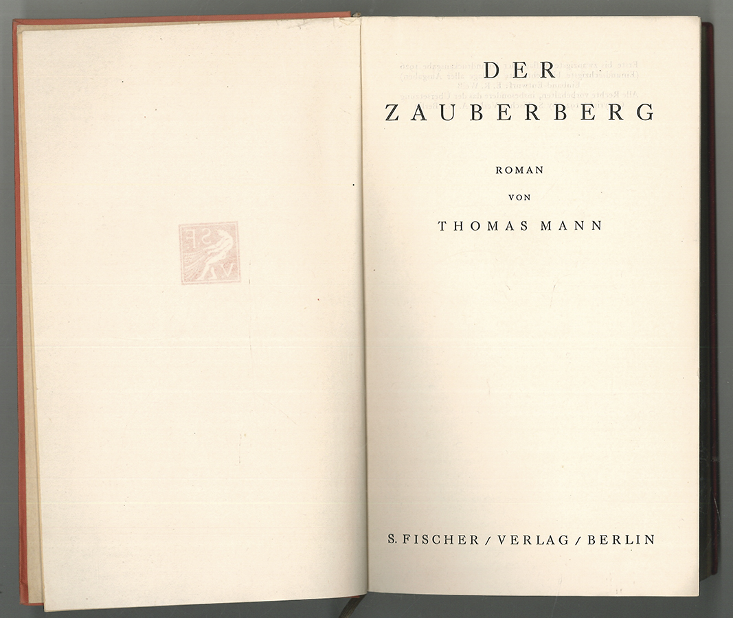 1085-25MANN, Thomas. Der Zauberberg. Roman. Erste bis zwanzigste Auflage der Dünndruckausgabe (Einundsechzigste bis achtzigste Auflage aller Ausgaben). Berlin, S. Fischer Verlag (1926). kl.-8°. 2 Bll., 938 S. (1 Bl.) Dünndruck. OLn.-Bd. mit goldgeprägtem Deckel- und Rückentitel. Einband mit minimalen Gebrauchsspuren, sonst gut erhalten. Erstausgabe der einbändigen Drünndruckausgabe. | |