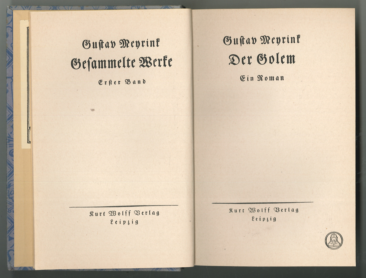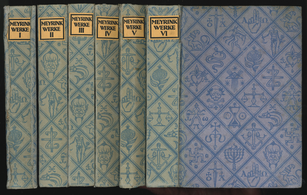 1190-25MEYRINK, Gustav. Gesammelte Werke.120.-150. Tsd. 6 Bde. Lpz., K. Wolff (1915). 8°. zus. ca. 2200 S. OPBde. m. Rückensch. Exlibris. In gutem Zustand.