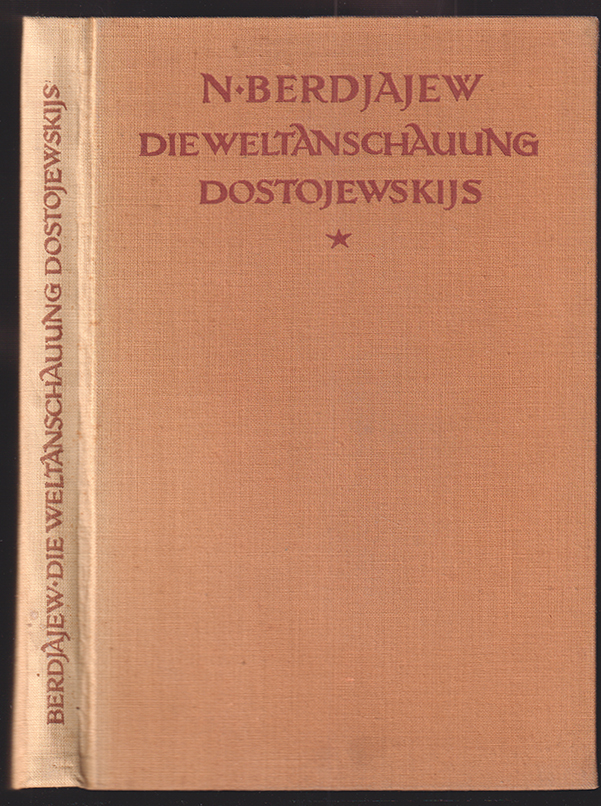 1206-25 DOSTOJEWSKIJ - BERDJAJEW, N(ikolai Alexandrowitsch) Die Weltanschauung Dostojewskijs. Nikolai Alexandrowitsch Berdjajew (1874-1948) war ein russischer Religionsphilosoph. Inspiriert vor allem von dem Religionsphilosophen Wladimir Solowjow, strebte er eine Vereinigung von Marxismus und russisch-orthodoxem Christentum an. Seine kritische Haltung gegenüber der sowjetischen Ideologie führte 1922 zu seiner Ausweisung. | ||
