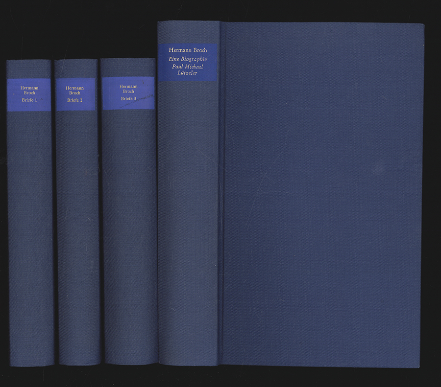 Briefe 1913-1951. 3 Bde. Frankfurt am Main, Suhrkamp (1981). 8°. 508, 474 (5), 636 (4) S. Blaue OLn.-Bde. (Kommentierte Werkausgabe. Herausg. v. Paul Michael, Lützeler. Band 13/1, 13/2, 13/3)