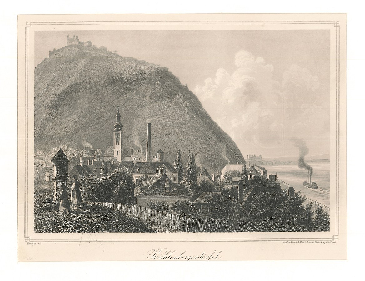 1327-25KAHLENBERG - Kahlenbergerdörfel. Stahlstich. Triest, Kunst-Anstalt des Oesterreichsichen Lloyd [um 1850]. 21 x 31, 5 cm. (Blattgr.).14,5 x 19 cm (Darstellungsgr.). Unter Passepartout. Gut erhalten. Ansicht des Kahlenbergerdorfes (Wien, 19. Bezirk) nach einem Entwurf von Krüger. | |