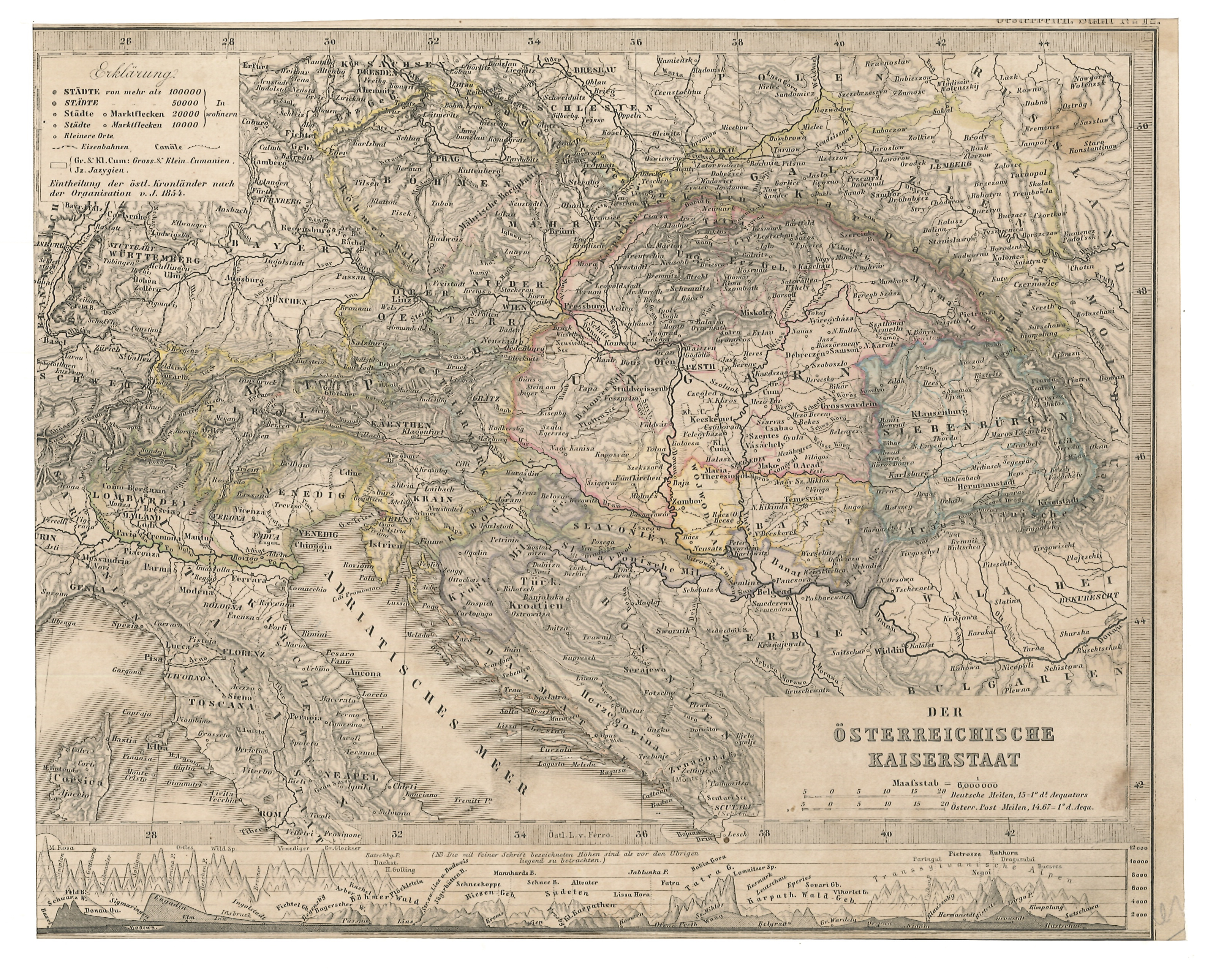 vgl. Espenhorst 2.5.5 - Aus Stieler's Schul-Atlas. "Eintheilung der östl. Kronländer nach der Organisation v. J. 1854". Am unteren Rand mit Höhenprofil.