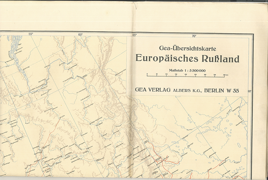 Gea-Übersichtskarte: Europäisches Rußland. Maßstab 1: 3. 300.000.Farb. Karte. Bln.,Gea [1941]. 110 x 85 cm. Gefalt., farb. Karte.