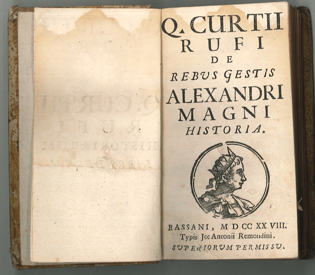 1449-25CURTIUS RUFUS, [Quintus]. De rebus gestis Alexandri Magni historia. Bassano,Jo. Antonio Remondini 1728. 12°. Schmutztitel, Titebl. mit Holzschnitt-Vignette, 22 Bll., 411 (1) S., 16 Bll. Pbd. d. Zeit mit goldgeprägtem Rückensch. Deckel mit Kleisterpapierbezug. Einband berieben, erste Seiten mit Wasserrand. Ausgabe der Geschichte Alexander d. Großen von Quintus Curtius Rufus, aus dem Verlag Remondini, der u.a. auch für seine Buntpapiere bekannt war. | |