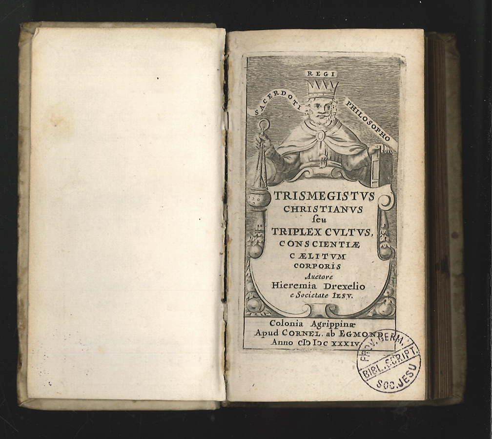 1548-25 DREXEL, Jeremias. Trismegistus Christianus seu Triplex Cultus, Conscientae Caelitum Corporis. De Backer-Sommervogel III, 187, 7; Dünnhaupt II, 1389, 9.9; VD17 3614:706774N; Praz II, 49 - Spätere Kölner Ausgabe des erstmals 1625 erschienenen Werkes von Jeremias Drexel (1581-1638) zu 3 Grundpfeilern des christlichen Lebens, die Drexel mit "Gewissen", "Heiligenverehrung" und "einfacher Kleidung" beschreibt. Mit 3 gestochenen emblematischen Kupfertafeln. | ||||