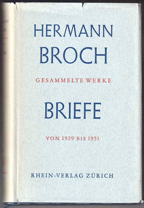 1636-25BROCH, Hermann. Briefe von 1929 bis 1951.Zürich, Rhein-Verlag (1957), 8°. 457 (2) S. OLn. m. OU. (Gesammelte Werke) EA.W.-G.² 13 -