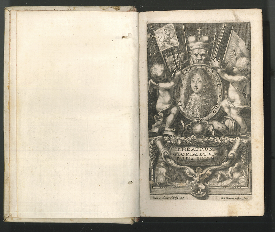 1661-25 [BRUNNER, Andreas?]. Theatrum virtutis et gloriae Boicae [...] Maximiliani Emmanuelis [...] VD17 12:124613V - Erstausgabe unter diesem Titel. Reich illustriertes Werk über die bayerischen Herrscher, von den Agilolfingern bis Ferdinand Maria von Bayern (1636-1679). Das VD17 schreibt das Werk dem Jesuiten Andreas Brunner zu, De Backer-Sommervogel (II, 263-265) erwähnt das Werk nicht bei Brunner. Mit gedruckter Widmung an Maximilian II. Emanuel, Kurfüst von Bayern (1662-1726). | ||||