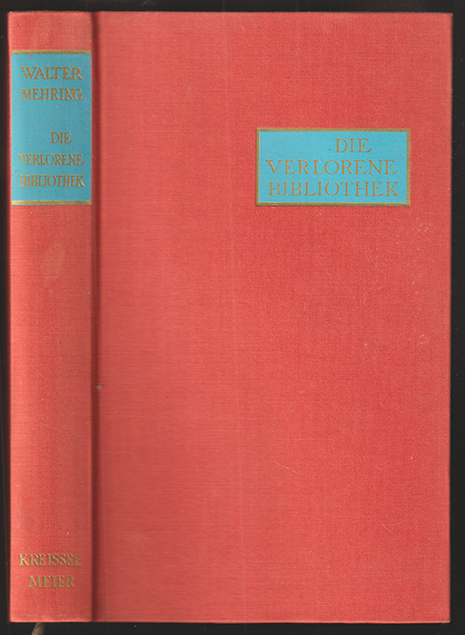 1727-24MEHRING, Walter Die verlorene Bibliothek. Autobiographie einer Kultur.Icking u. München, Kreisselmeier Vlg. 1964. 8°. 304 S. OLn. Gut erhalten. vgl. W.-G.² 26 - Die erste erweiterte zbd revidierte Neuausgabe. Die EA erschien in Hamburg bei Rowohlt 1952.