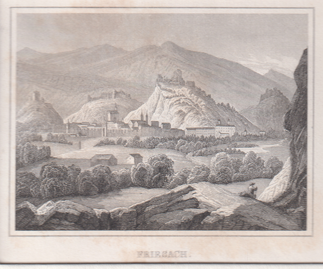1804-25Friesach.Stahlstich. Stuttgart, J. Scheible 1840. 7, 5 x 10 cm. (Bildgr.). Passepartout. Nebehay-W. 654 - Aus: Adolf Schmidl Das Königreich Illirien.