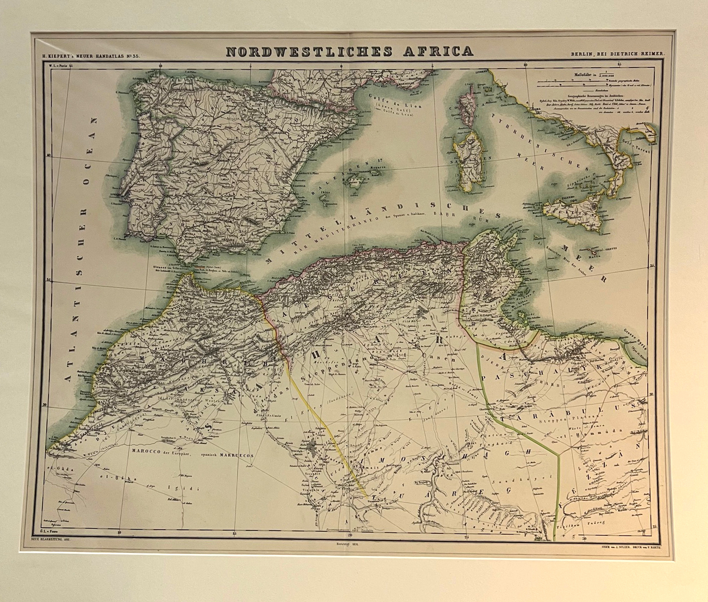 Espenhorst 20. 2.5 - Grenzkoloriertes Karte von Nordwestafrika mit Marokko, Algerien und Tunesien. Neue Bearbeitung 1861, berichtigt 1876. Aus: "Reimers Neuer Handatalas, Nr. 35".