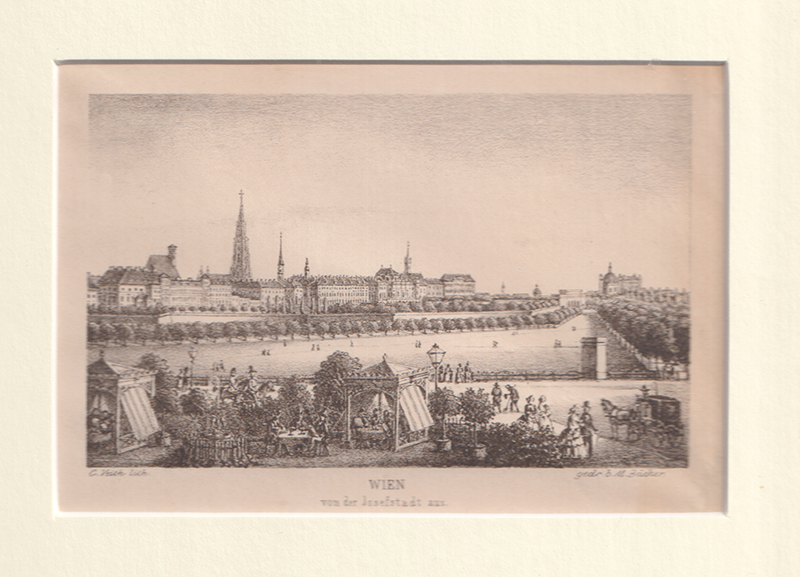 1816-25VEITH, Gustav. Wien von der Josefstadt aus.Lithogr. M. Bäcker (vor 1857). 7, 2 x 11, 8 cm. Lithogr. Unter Passepartout.