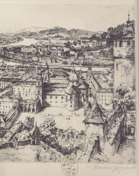 1824-12BERGMEISTER, Hermann [1869-1938]. SalzburgOrig.-Radierung Blattgröße: 39 x 47 cm., Bildausschn.: 24 x 32 cm. In sehr gutem Zustand