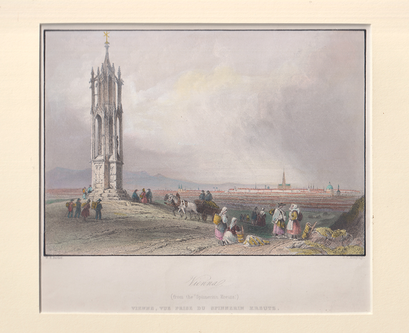 Vienna (from the "Spinnerin Kreutz") Vienne, vue prise du Spinnerin Kreutz. [Wien, Blick von der Spinnerin am Kreuz]. Kolor. Stahlstich. London, Beattie ca. 1845. 12, 7 x 18 cm. William Henry Barteltt (1809-1854) fec. James Charles Armytage (1802-1897) sc. Unter Passepartout.