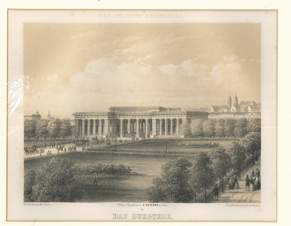 Wien und seine Umgebungen. Das Burgthor.Tonlithographie. Wien , Paterno 1850. 16, 3 x 21 cm. (Bildgr.). Unter Passepartout.