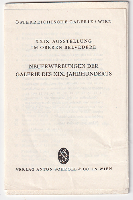 Neuerwerbungen der österreichischen Galerie des XIX. JahrhundertsWien, Schroll 1940. 10, 48 S. Mit 55 Abb. OKart. Dazu:: Das Barockmuseum im unteren Belvedere. Neue Ausg. Ebda. 1940. 21 S. Ogeh.