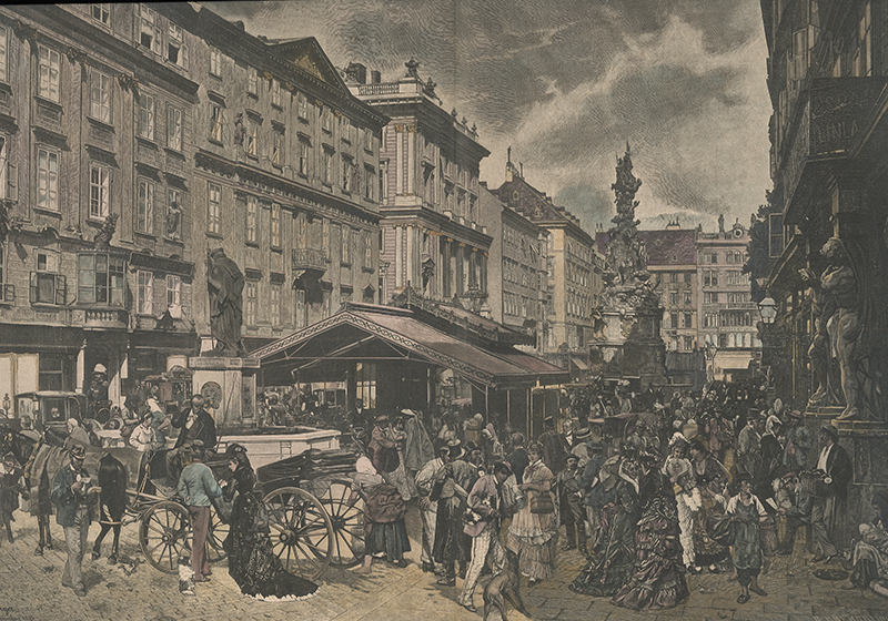 0056-26KARGER, Carl. Am Graben in Wien. Gemälde von Carl Karger. Handkolorierter Hohlzstich. Carl Karger fec, Richard Brend' Amour sc. Stuttgart, Allgemeine Illustrierte Zeitung 1876. 33 x 47 cm (Bildgr.), Unter Passepartout. Aus: Über Land und Meer - Allgemeine Illustrierte Zeitung Stuttgart. 1859-1923. | |
