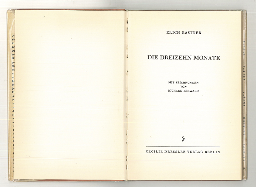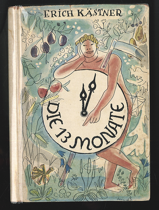 0122-26KÄSTNER, Erich. Die Dreizehn Monate. Mit Zeichnungen von Richard SEEWALD. Berlin, Cecilie Dressler [1955]. 8°. 1 Bll., 46 S. mit zahlreichen Abb. OLn.-Bd. mit farb. bedrucktem OUmschlag. Umschlag mit kl. Randläsuren. Minimal angegilbt. Im Jahr der Erstausgabe erschienene Lizenzausgabe. | |