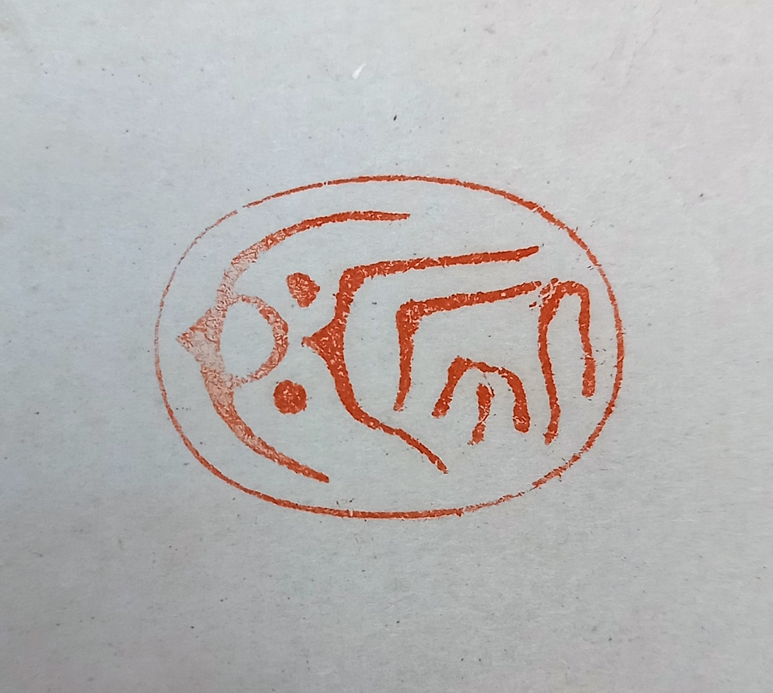 0153-26DAIEN. Kouyasan Dragon. Antique hanging paper scroll, black ink. Japan. Heigth 42,9". Width 15.2"; 108,9 x 38,6 cm Wooden roller ends. Fragile, edges damages, some tears. Kakejiku Japanese paper hanging scroll showing a Koyasan Snake-Dragon. With signature seal "Daien". | |