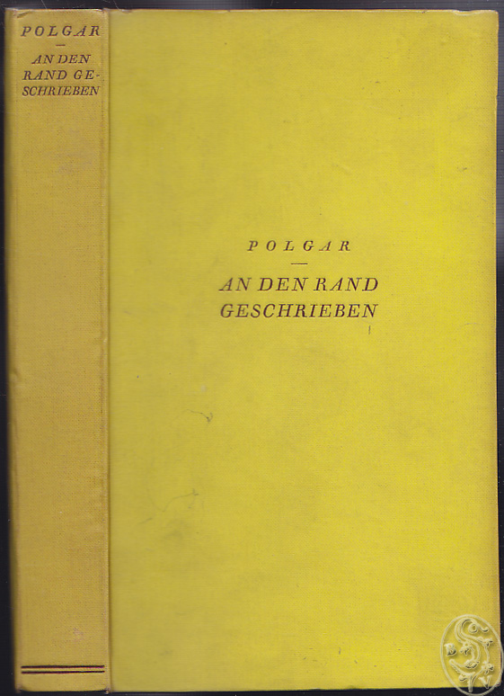 0198-14POLGAR, Alfred. An den Rand geschrieben.7.-10. Tsd. Bln., Rowohlt 1927. 300 S., 1 Bl. OLn. Einbd. staubfleckig.