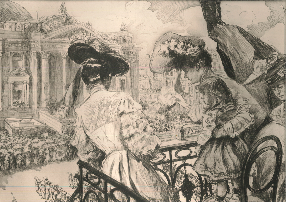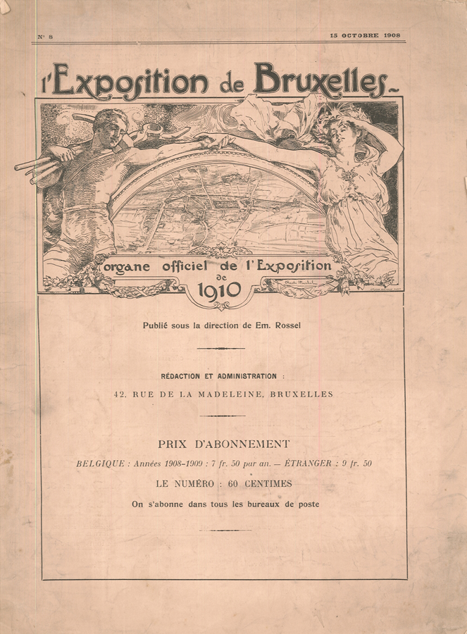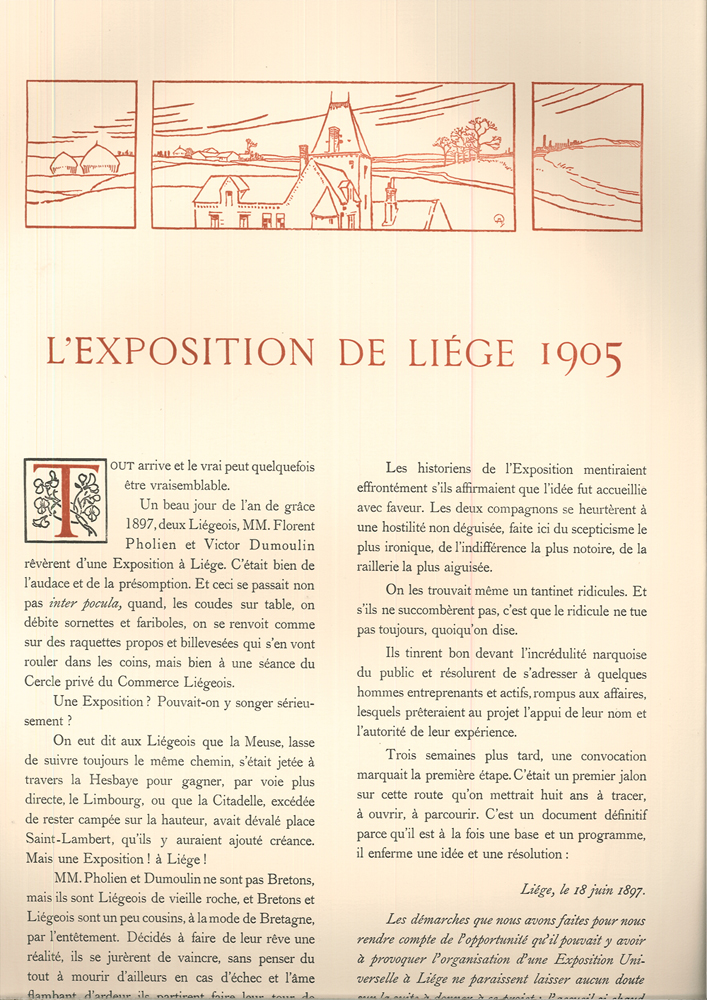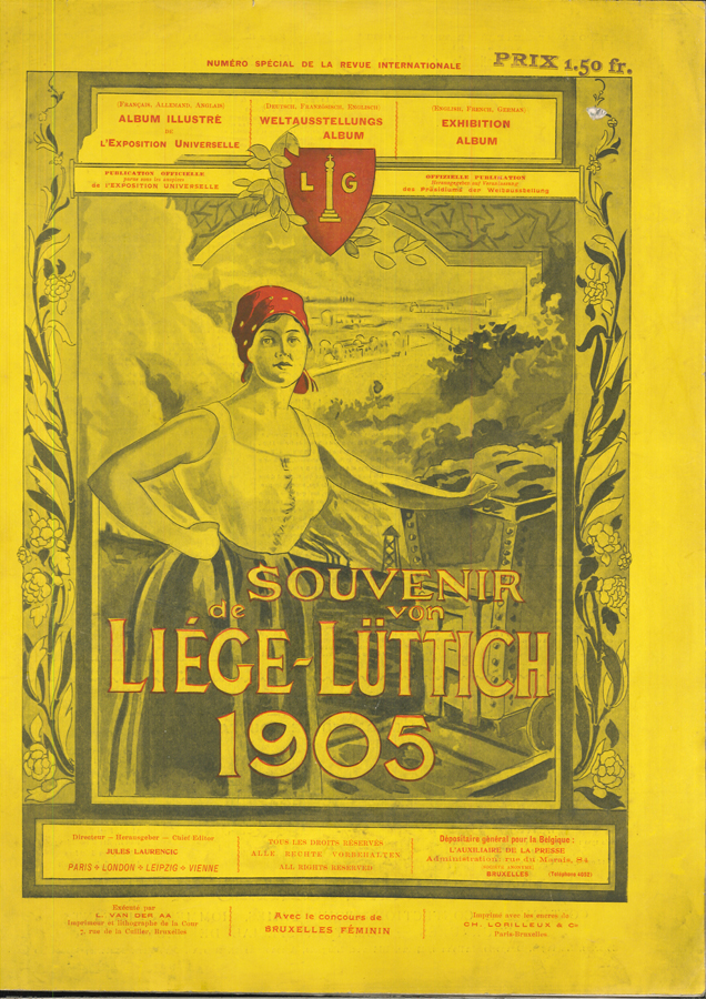 0198-22 L'EXPOSITION UNIVERSELLE DE LIÈGE - 1830-1905. En Commémoration de fetes du LXXXVe anniversaire de l'indépendance de la Belgique et de l'exposition universelle de Liège 1906. Nr. 584 v. 1000 num. Exemplaren, signiert vom Verleger und künstler. Leiter Paul Renouard. - Zweisprachige französisch-flämischische Ausgabe mit Texten zur Geschichte Belgiens, zur Ausstellung in Lüttich und zur französischen Sektion dieser Ausstellung. Illustriert mit 80 großen, durch bedruckte Seidenhemdchen geschützte Tafeln (47 x 58 cm.). Die meisten Tafeln stammen von Paul Renouard (Darstellung der königlichen Familie, des belgischen politischen Gremiums, der verschiedenen Veranstaltungen, einige von N. Dorville und Maurice Feuillet, 1 Frontispiz von Fernand Khnopff, weitere Tafeln v. Henri Cassiers, Franz Gailliard, Rassenfosse, Flasschoen, Fabry. Édition bilingue français-flamand avec des textes sur l'histoire de la Belgique, sur l'exposition à Liège et sur la section française de cette exposition. Illustrée de 80 grandes planches (47 x 58 cm.) protégées par des chemises imprimées. La plupart des planches sont de Paul Renouard (représentation de la famille royale, du corps politique belge, des différentes manifestations, certaines de N. Dorville et Maurice Feuillet, 1 frontispice de Fernand Khnopff, autres planches de Henri Cassiers, Franz Gailliard, Rassenfosse, Flasschoen, Fabry. | |||||||||||