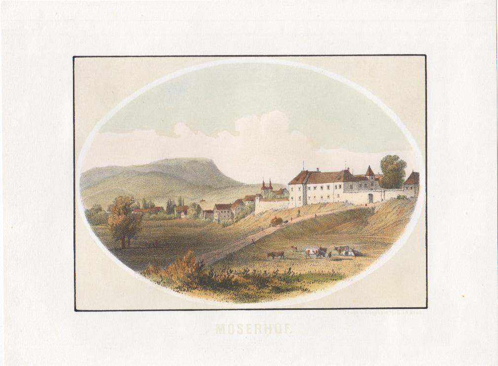 Moserhof. Getönte Orig.-Chromolithogaphie auf festem Papier. Graz, um 1863. Bildauschn. 13 x 16 cm. Blattgr. 20 x 26 cm.