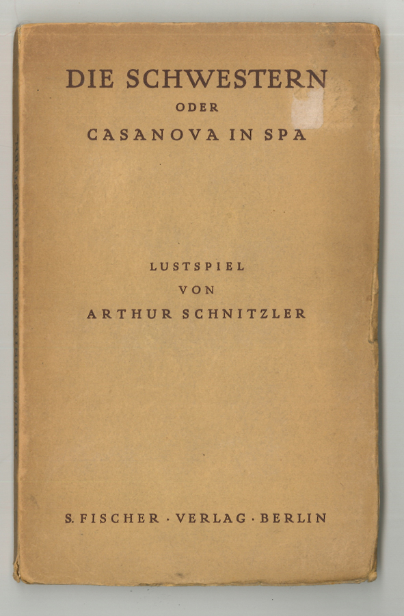 1025-25 SCHNITZLER, Arthur. Die Schwestern oder Casanova in Spa. Ein Lustspiel in Versen. Drei Akte in einem. W.-G.² 39 - Erstausgabe von Arthur Schnitzlers (1862-1931) Lustspiel. Mit eigenhändiger Widmung Schnitzlers am fliegenden Blatt (mit dem Verlagssignet): "Arthur Schnitzler. Wien, 13.3.1921". | |||