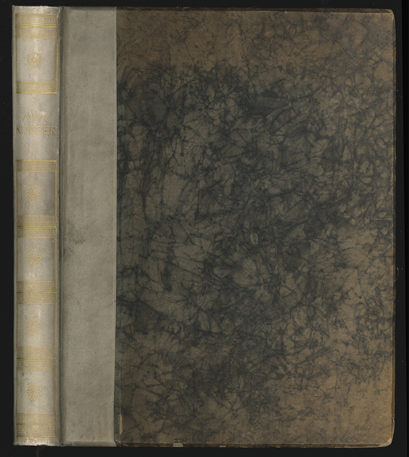 1201-25 KLINGER, Max. Radierungen, Zeichnungen, Bilder und Skulpturen, Mit den drei vollständigen Folgen: Zeichnungen über das Thema Christus, Entwürfe zu einer Griechisch-Römischen Gedichtsammlung, "Eine Liebe" Rad. Op. X . Eines von 1000 num. Exemplaren auf Van Gelder Bütten. | ||||
