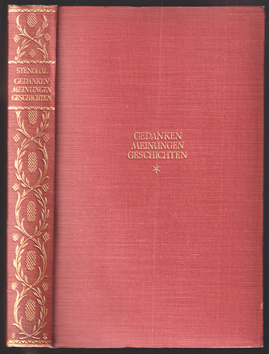 Gedanken, Meinungen, Geschichten aus den Büchern über Mozart, Rossini, Bonaparte, Literatur, Länder und Leute. Ausgewählt und übersetzt von Arthur Schurig. Leipzig, Insel 1928. 8°. 703 (3) S. auf Dünndruckpapier. OLn. m. Goldpräg. Besitzverm. a. d. Innendeckel. In gutem Zustand.