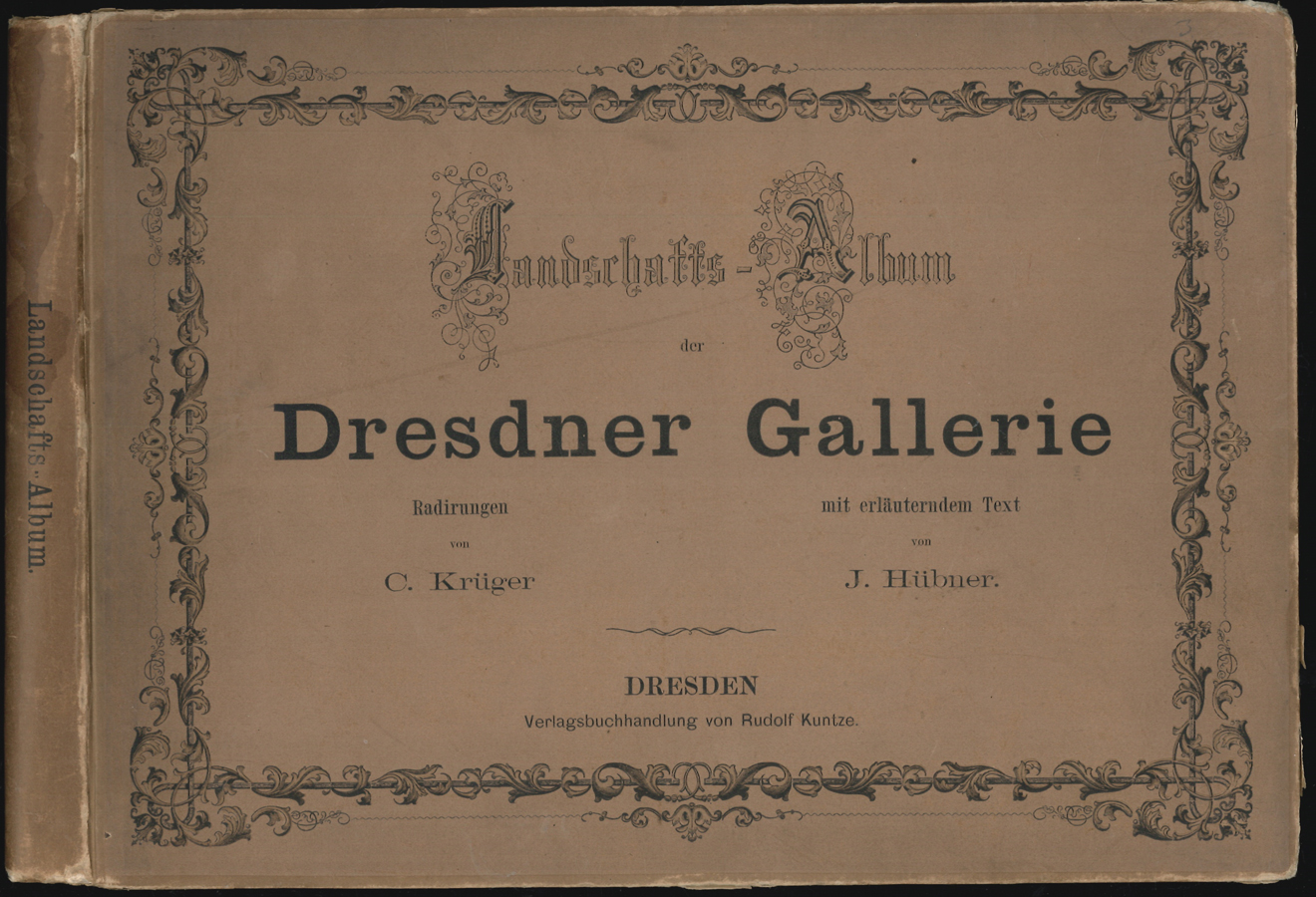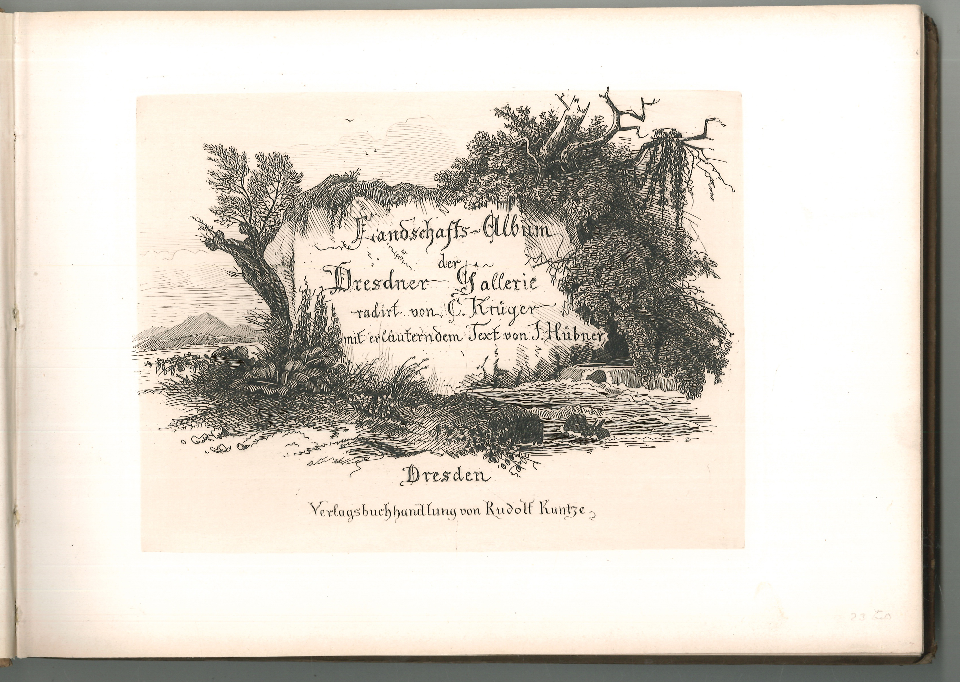 1271-25 KRÜGER, C[arl] - HÜBNER, J(ulius). (Text). Landschafts-Album der Dresdner Gallerie. Komplettes Album mit verkleinerten Radierungen niederländischer Landschaftsdarstellungen, u. a. von Claude Lorrain, Lucas van Uden oder Jacob van Ruysdael. Die Radierungen stammen von Carl Krüger. | |||