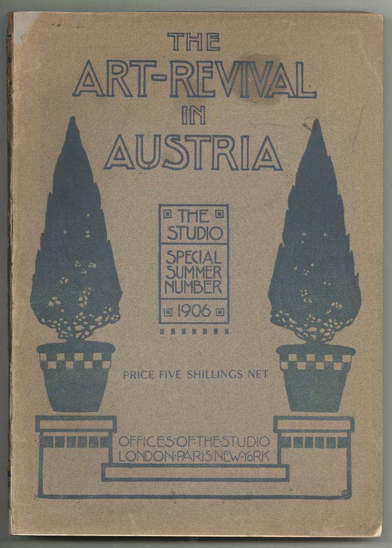 1446-25 HOLME, Charles (Ed.). The Art-Revival in Austria. The Studio Special Number. Repräsentative Übersicht über die Kunstleistungen in Österreich um 1900. Textbeitrag v. L. Hevesi: "Modern Painting in Austria" über R. v. Alt, H. Darnaut, R. Jettmar, M. Liebenwein, G. Klimt, J. Engelhart, C. Moll, E. Orlik, F. Schmutzer, E. Stöhr; - Hugo Haberfeld über Plastik und Architektur in Beispielen v. L. Bauer, J. Hoffmann (Sanatorium Purkersdorf u.v.a.), J. Kotéra, Kolo Moser, H. Ofner, J. Olbrich, R. Orley, O. Prutscher, J. Urban, O. Wagner u.a. - A. S. Levetus: "Modern Decorative Art in Austria: F. Andri, F. Barwig, A. Böhm, C. O. Czeschka J. Engelhart, K. Fahringer, E. Hoppe, J. Hoffmann, H. Lefler, M. Lenz, Kolo Moser, Rosa Wachsmann u. v. a. | ||||