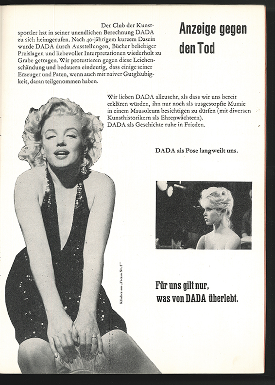 1588-25 LASZLO, Carl. Panderma 2. Revue de la fin du monde. Carl Laszlo (ungarisch László Károly; geb. 1923 in Pécs - 2013) war ein ungarisch-schweizerischer Kunsthändler, Sammler, Psychoanalytiker, Autor und Verleger. Er war in Kontakt mit Persönlichkeiten wie Patricia Highsmith und William S. Borroughs oder Künstler wie Brion Gysin, William Wauer, Hans Arp, Dieter Roth, Eva Wipf, Friedensreich Hundertwasser, Marcelo Morandini, Yves Laloy, Johannes Grützke, Christian Schad, Timm Ulrichs, Thilo Maatsch oder Sascha Wiederhold. Mit vielen von ihnen und anderen arbeitete er auch im Rahmen seiner Tätigkeit als Herausgeber und Verleger zusammen. Von Mitte der 1950er Jahre bis in die 1980er Jahre gab er eine Reihe von Kunsteditionen heraus und publizierte die vorl. Zeitschrift Panderma (1957-1977). - Beiliegend: "Manifest" gegen den Avantgardismus. 42 x 28 cm. - Beiliegend: "Manifest" gegen den Avantgardismus. 42 x 28 cm. | ||||