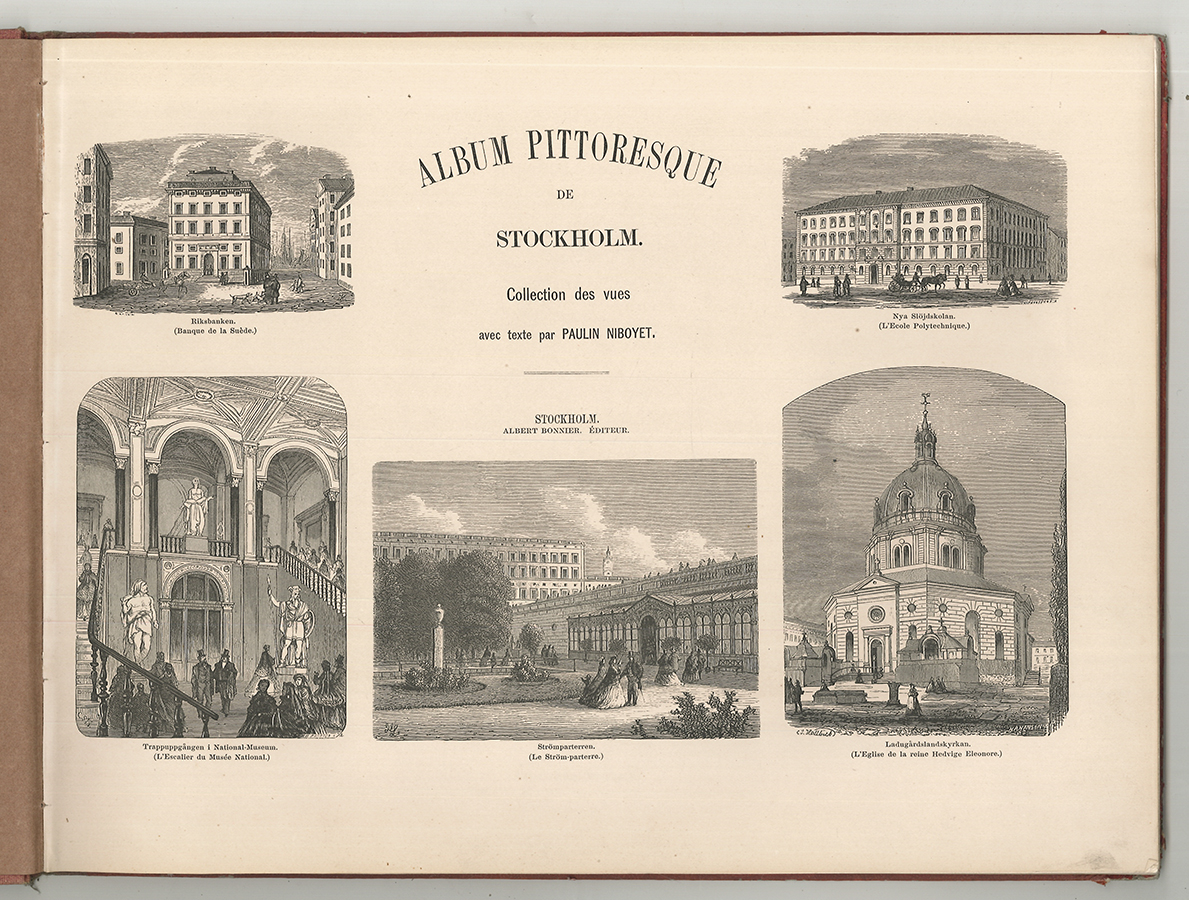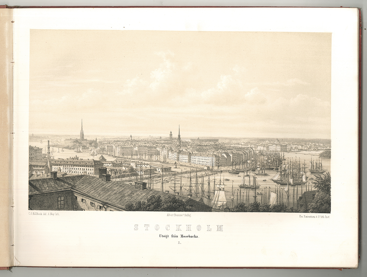 1704-25 STOCKHOLM - NIBOYET, Paulin. Album pittoresque de Stockholm. Collection des vues. Album mit eindrucksvollen Ansichten von Stockholm, darunter auch eine Nachtdarstellung, mit beschreibendem Text von Jean Alexandre Paulin Niboyet (1825-1906). Es existiert auch ein unter gleichem Titel um 1885 erschienenes Album mit weniger Tafeln und 1 Plan. Die Lithographien stammen aus dem Verlag "Emilius Bärentzen & Co.s litografiske Institut". | ||||