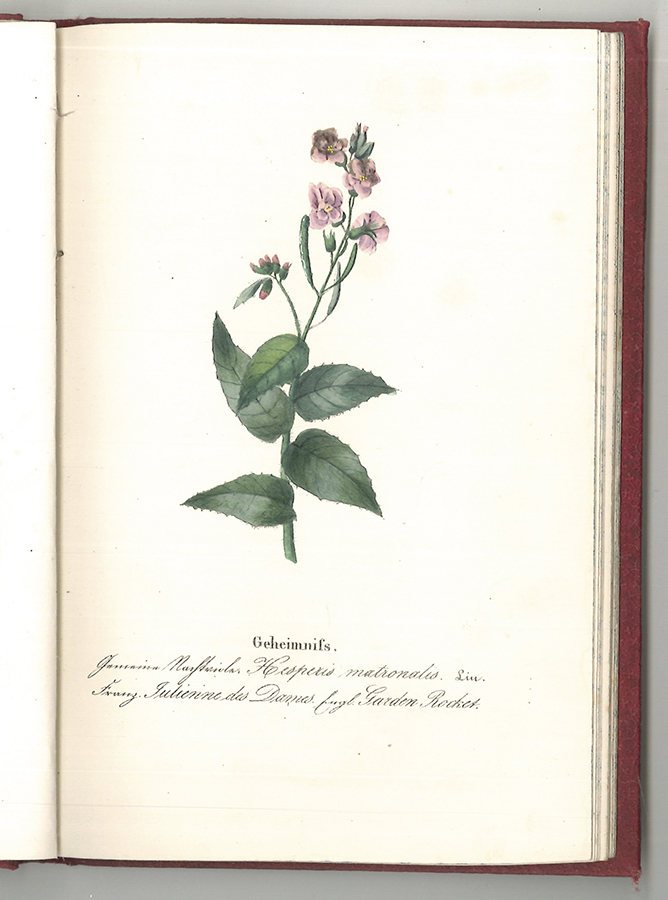 1706-25 STOECKLER, J. K. (Hg.). Selam oder die Sprache der Blumen, mit naturgetreuen, fein kolorirten Abbildungen. Gezeichnet von Heinrich REICHERT. Seltenes, aufwendig gestaltetes Album zur Blumensprache, die im Biedermeier eine neue Hochblüte erlebte. Der Herausgeber J. K. Stoeckler war scheinbar Apotheker in Mähren, ist aber biographisch nicht näher greifbar. Jedes Tafelblatt zeigt eine fein kolorierte Blumendarstellung mit Bezeichnung der Pflanze und teilweise mit Spruch, jede Tafel ist mit einem Blindstempel "Selam" versehen. Über den KVK nur in 2 österreichischen und 1 deutschen Bibliothek nachweisbar. Das Exemplar der Österreichischen Nationalbibliothek ist unkoloriert. Heinrich Reichert (1801-1893) war Maler, Lithograph und ab den 1870er Jahren auch als Photograph tätig. | |||||