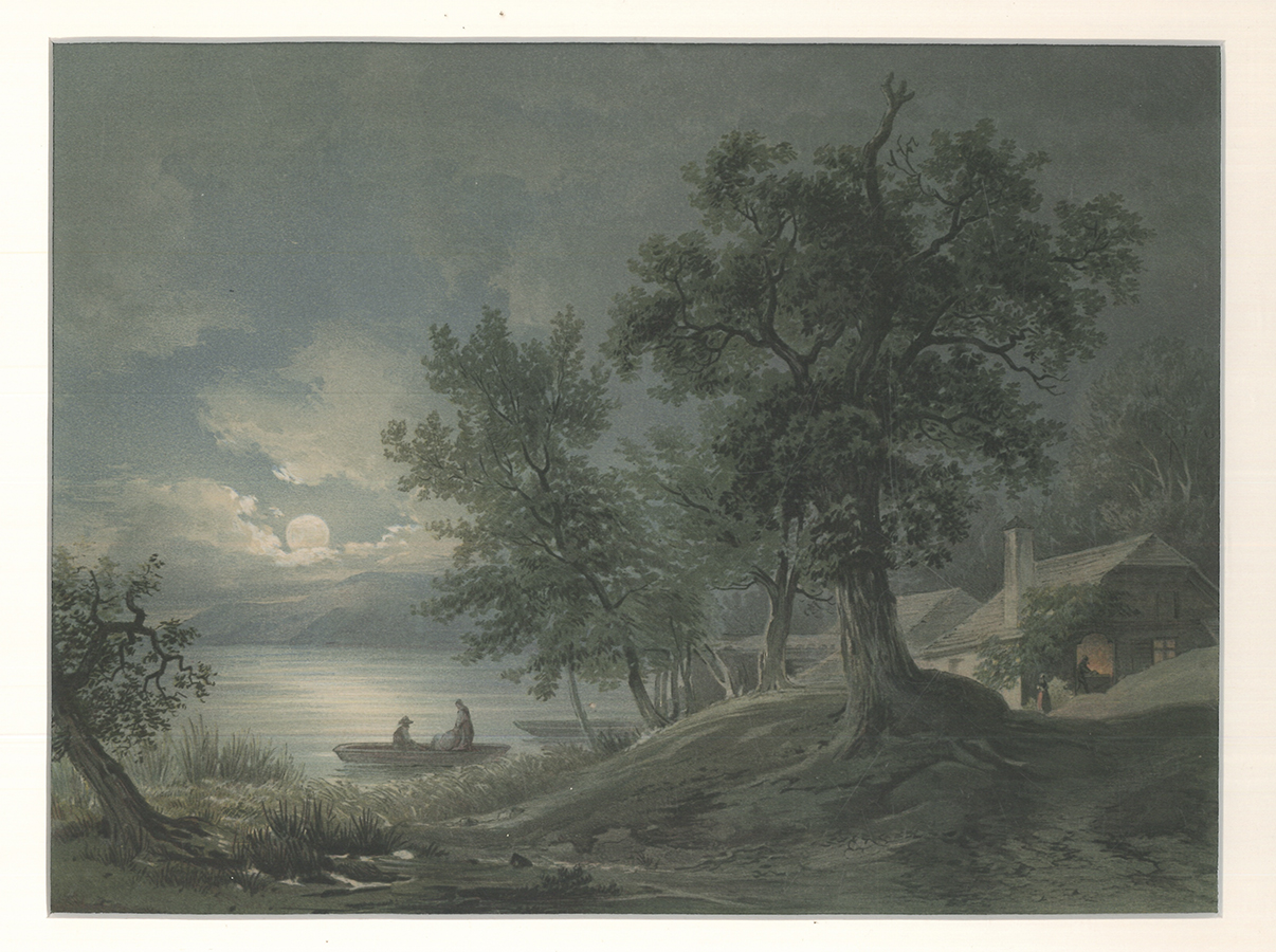 Nebehay-W. 258,24 - Mondscheinansicht des Traunsees, aus: Joseph Höger, Aquarell-Schule, Wien [um 1860].