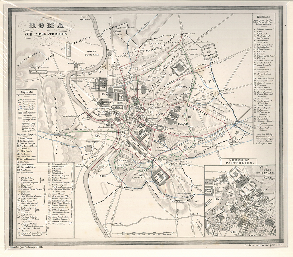 Stadtplan von Rom während der Kaiserzeit. Aus: Orbis Terrarum Antiquus, Nürnberg Campe, um 1853.