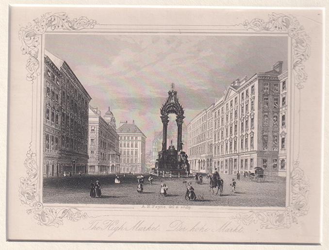 The High Market. Der hohe Markt.Stahlstich: Leipzig, A. H. Payne 1848. 9, 3 x 11 cm. (Bildgr.). mit gedrucktem Rahmen 10, 7 x 14 cm. Passepartout.