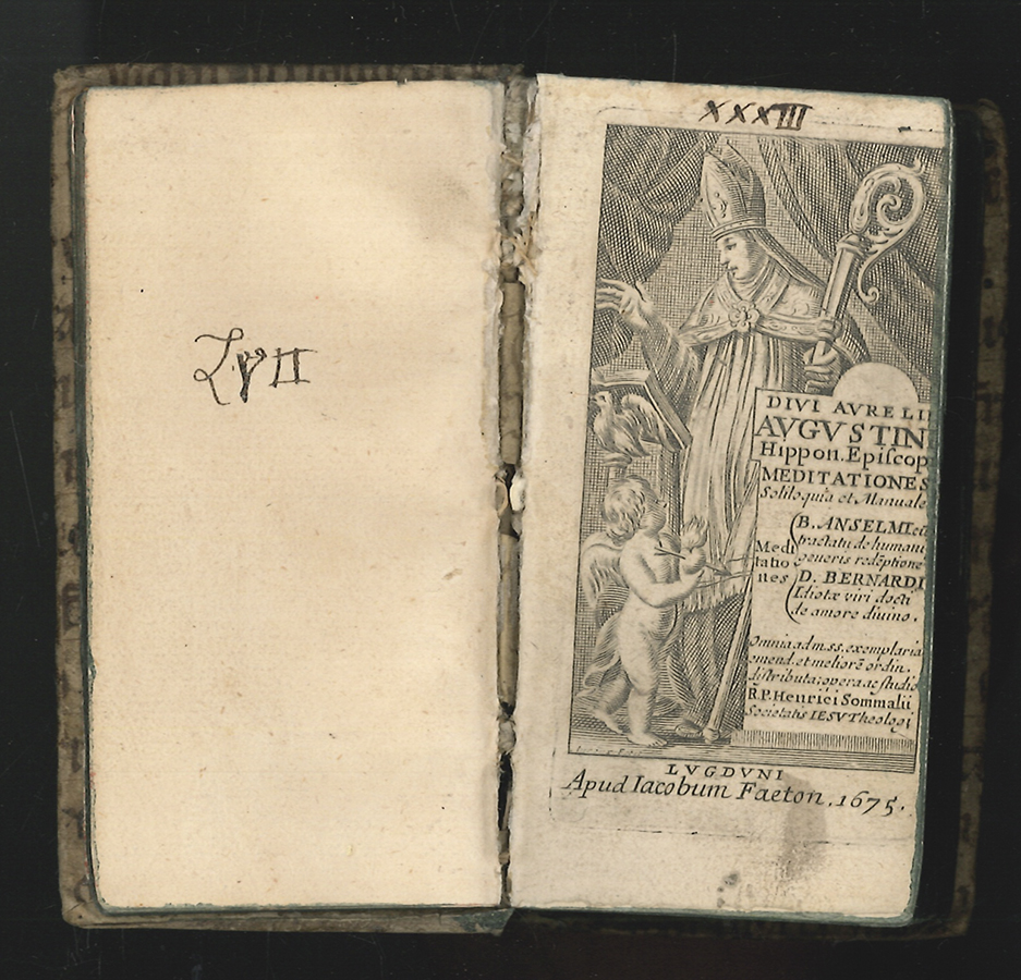 1829-25 AUGUSTINUS, Aurelius. Divi Aurelii Augustini Hippon. episcopi meditationes, soliloquia et manuale: Meditationes B. Anselmi cum tractatu de humani generis redemptione. Meditationes D. Bernardi. Meditationes Idiotae viri docti de amore divino [...] Enthält neben den "Meditationes" von Aurelius Augustinus (354-430) auch jene von Anselm von Canterbury (1033-1109) und Bernard von Clairvaux (1090-1153) | |||
