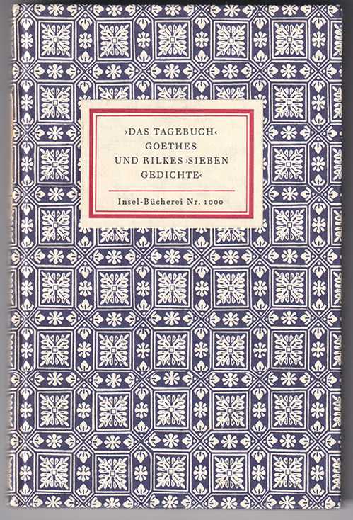 Das "Tagebuch Goethes" und Rilkes "Sieben Gedichte".Frankfurt am Main, Insel 1978. 8°. 214 (2) S. Tafelteil XI (1) S. OPBd. In tadellosem Zustand. (Insel-Bücherei Nr. 1000) EA.
